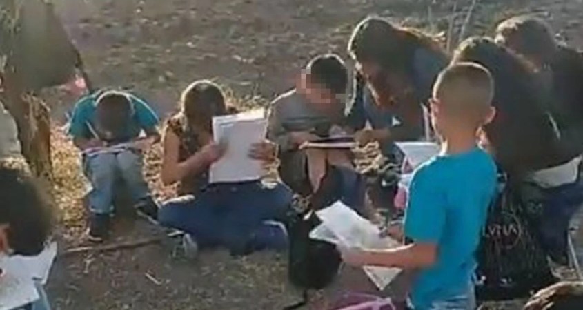 A través del perfil de Franchesca Flores, fue compartido un video en donde se observa como una maestra se encuentra debajo de un árbol con un grupo de niños dándoles clases. Los niños, explicó, son hijos de personas que fueron desalojados del predio de la comunidad hace más de una semana, algunos de ellos ya no siguieron estudiantes y otros están rezagados.