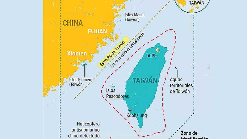 El Ministerio de Defensa de Taiwán anunció, además, la detección de tres buques de guerra y un helicóptero antisubmarino que cruzó la zona de identificación de defensa aérea de la isla.