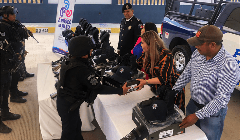La alcaldesa mencionó que en total se entregaron cinco chalecos, cascos, 10 radios de comunicación, más de 50 armas y 100 uniformes. Para esto se tuvo la colaboración del fondo de Fortalecimiento del estado, el municipio y un fondo más para dar este tipo de apoyos. En total la inversión fue de cuatro millones de pesos.