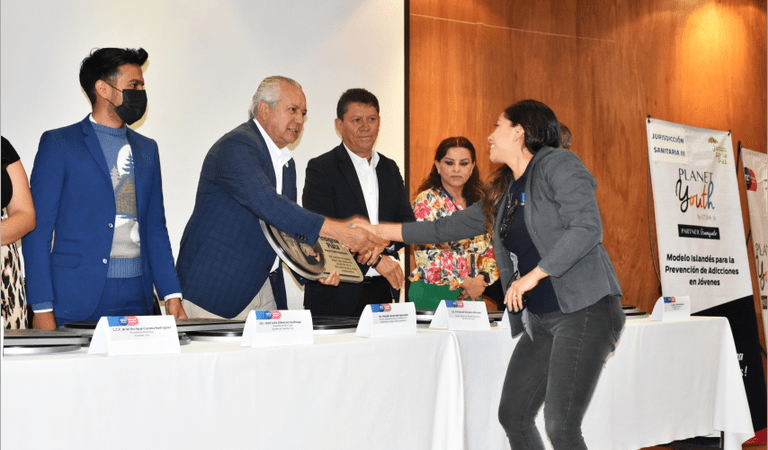 El Sistema de Salud entregó 15 insignias Planet Youth al mismo número de instituciones públicas y privadas de seis municipios que han cumplido y refrendaron su compromiso para mantener sus espacios libres de problemas de drogadicción y realizan acciones en contra de las adicciones.