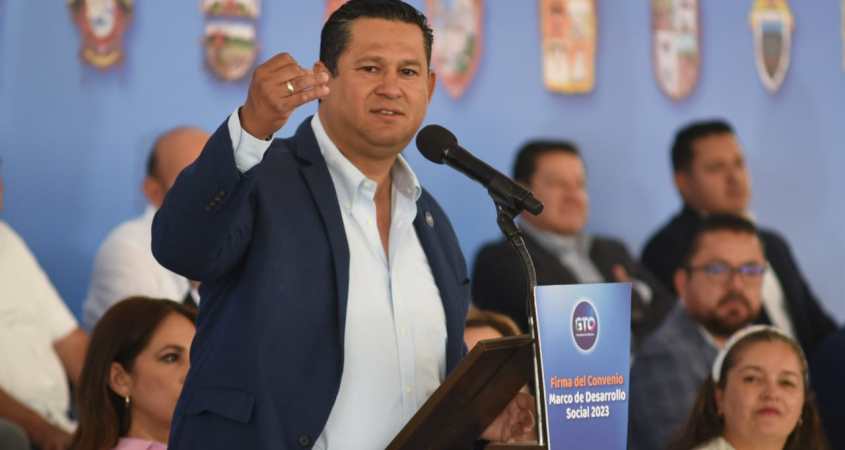 Diego Sinhue Rodríguez Vallejo, gobernador del Estado, destacó la firma de este convenio con los 46 municipios, pues se busca que todos y todas tengan la posibilidad de aplicar más pavimentaciones de calles, drenajes y todas aquellas acciones relacionadas con los servicios básicos en colonias y comunidades.