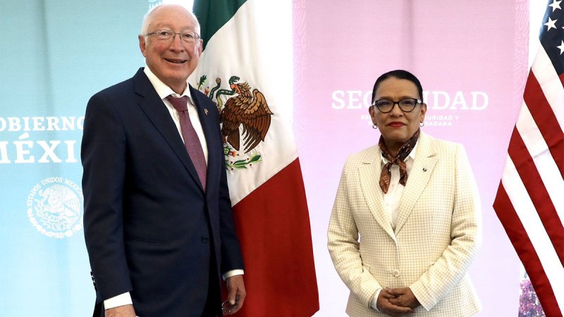 La titular de la Secretaría de Seguridad y Protección Ciudadana (SSPC), Rosa Icela Rodríguez, recibió este martes al embajador de Estados Unidos en México, Ken Salazar, para atender temas relacionados con el Entendimiento Bicentenario.