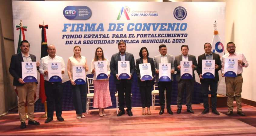 Autoridades de nuevo municipios, incluido el Gobierno de Irapuato, firmaron junto a autoridades del Gobierno del Estado, el convenio del ‘Fondo Estatal para el Fortalecimiento de la Seguridad Pública Municipal’, con el cual refrendan su compromiso para mantener corporaciones fortalecidas al servicio de la ciudadanía.