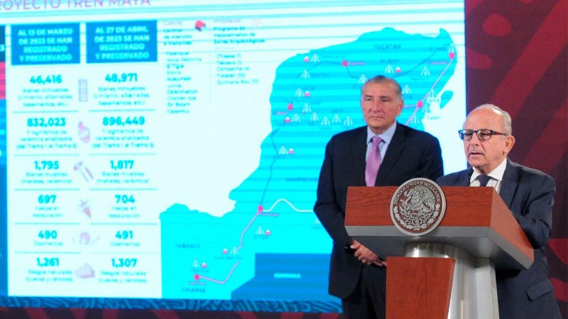 «En el caso de salvamento en el proyecto Tren Maya, les puedo compartir que ya de los tramos 1 al 5, es decir, de Palenque a Tulum, Quintana Roo, hemos concluido el 100% de los vistos buenos de obra, es decir, las obras avanzan”, expuso el encargado de la dependencia.