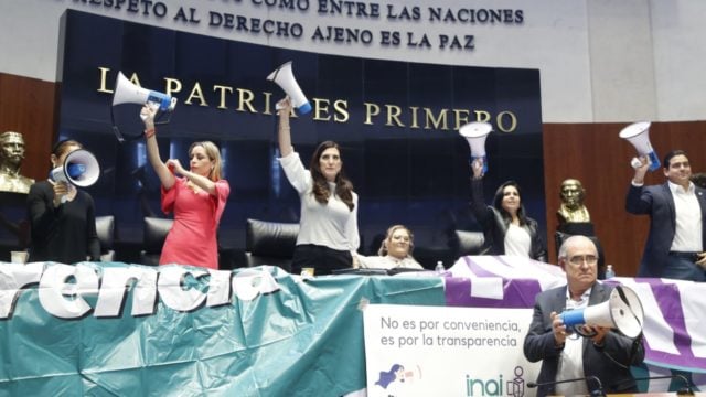 Los senadores de oposición -PAN, PRI, PRD, MC y Grupo Plural- llevan 18 horas tomando la tribuna del Senado y aseguraron que continuarán así hasta que se establezca un acuerdo con Morena para que se nombre a un comisionado del Instituto Nacional de Transparencia, Acceso a la Información y Protección de Datos Personales (INAI); además dijeron que los legisladores de Morena no pueden sesionar en una sede alterna si antes no se les consulta a ellos.