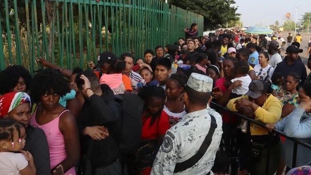 “¿Por quá el presidente de México, Andrés Manuel López Obrador, dice que ayudan a los migrantes? Nosotros no estamos haciendo daño a nadie, aquí no hay agua, comida y dónde hacer las necesidades, tenemos a niños con fiebre, ¿dónde están los derechos humanos?”, denunció.