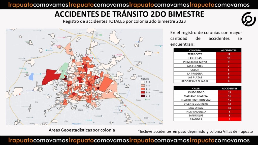 El Observatorio ciudadano Irapuato ¿Cómo vamos?, presenta el Reporte de accidentes de tránsito del 2do bimestre del 2023.