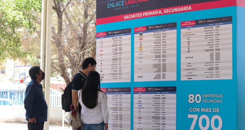 Más de 700 empleos fueron ofertados por 80 diferentes empresas que se encuentran instaladas en el estado de Guanajuato, durante el primer Enlace Laboral que llevó a cabo el Gobierno del Estado en Irapuato.