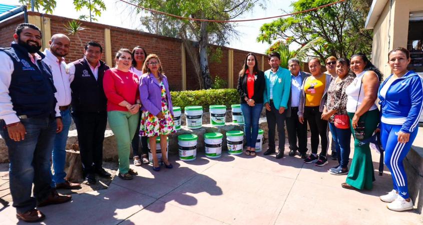 Autoridades municipales entregaron pintura a directivos, docentes y estudiantes de la Telesecundaria número 645 de la comunidad Carrizal Grande, ante la petición de este insumo a la presidenta municipal, Lorena Alfaro.