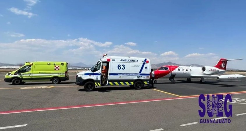 “Trasladamos paciente del Hospital de Cuidados Críticos de Salamanca al Aeropuerto Internacional del Bajío para viajar a la ciudad de Galveston, Texas, para ser atendido por personal de fundación Shriners. Se trata de un lactante de 2 años 10 meses con quemadura en 80% del cuerpo de segundo y tercer grado por pirotecnia”, se precisa en la descripción de la foto que posteararon.
