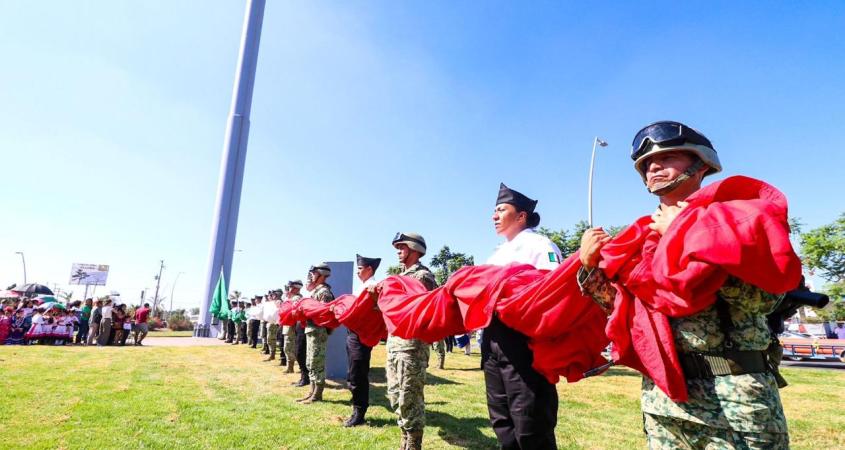 Para conmemorar las fechas de mayor trascendencia en la historia de México, el Gobierno Municipal continúa con el programa anual de Actos Cívicos, dentro del cual, se realizó el izamiento de la Mega Bandera, en el que participaron instituciones educativas, así como autoridades municipales, estatales y federales.