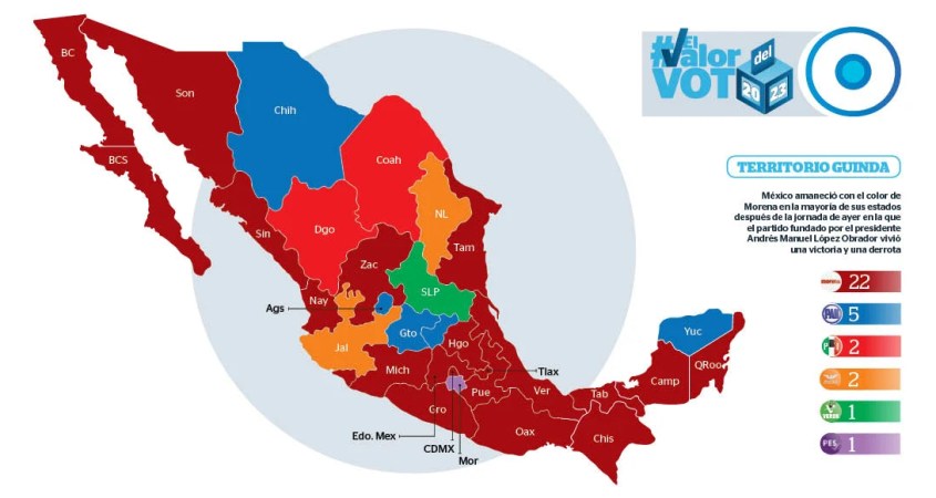 México amanecerá con el color de Morena en la mayoría de sus estados después de la jornada de ayer en la que el partido fundado por el presidente Andrés Manuel López Obrador vivió una victoria y una derrota