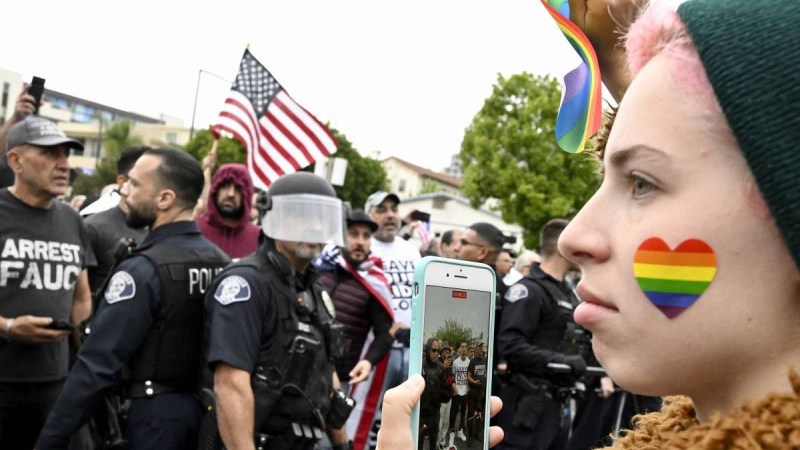 Manifestantes a favor y en contra de la comunidad LGBT se enfrentaron y estallaron una campal durante una manifestación el martes por la noche frente a una reunión de la junta del Distrito Escolar Unificado de Glendale (al norte de Los Ángeles, California), que estaba programada para votar sobre el reconocimiento de junio como Mes del Orgullo.