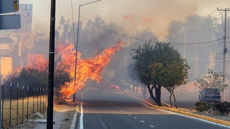 Las llamas invadieron la vialidad en López Sanabria, por lo que los Bomberos de León cerraron el paso.
