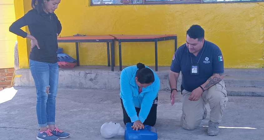 Habitantes de Cuchicuato, La Soledad, Carrizal Grande y Peñuelas, recibieron la capacitación, que incluyó temas como la forma correcta de tomar la presión arterial, la toma de glucosa, primeros auxilios básicos, que comprende la Reanimación Cardiopulmonar (RCP), además de conocimientos para contener un incendio.