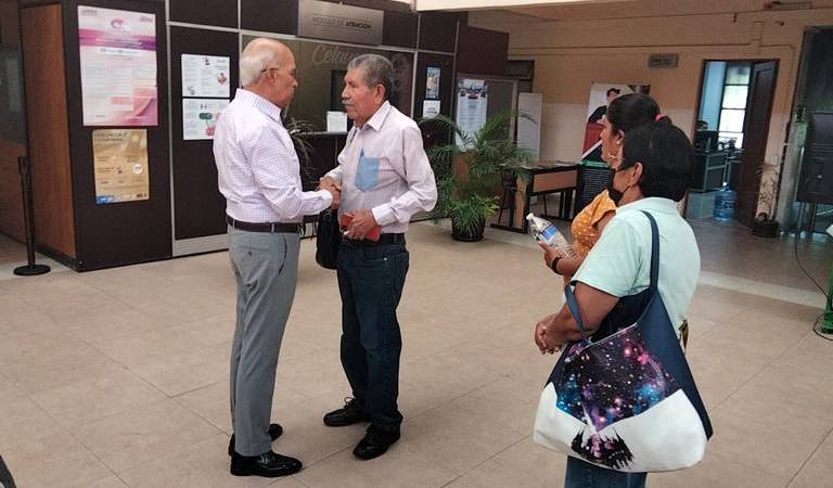 El presidente municipal Javier Mendoza Márquez recibió a Benito Quevedo Perales para externarle su apoyo tras el asesinato de su hija, Paola Quevedo Arreaga, ocurrido la tarde del martes; además estuvo el secretario del Ayuntamiento Jorge Gámez Campos, y Galo Carrillo, enlace de Vinculación de Gobierno.
