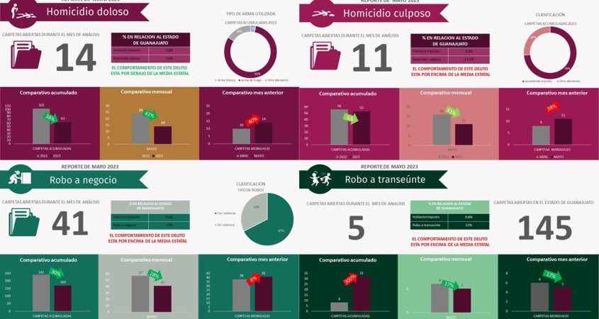 El observatorio ciudadano Irapuato ¿cómo vamos? presenta su reporte de incidencia delictiva del municipio de Irapuato correspondiente al mes de mayo 2023 destacando los siguientes datos: