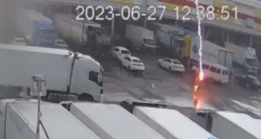 Un hombre fue alcanzado por un rayo en plena tormenta eléctrica en un mercado de vegetales de la ciudad de Krasnodar, en Rusia.