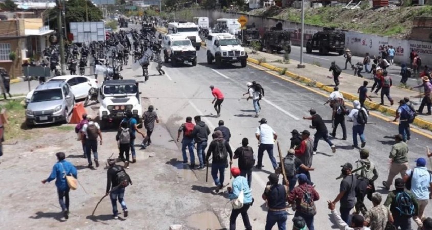 En primera instancia, alrededor de las 10:00 horas de este lunes, los manifestantes arribaron al poblado de Petaquillas, donde se toparon con un contingente de alrededor de 500 policías estatales e integrantes de la Guardia Nacional con equipos antimotines, quienes fueron desplegados para evitar el bloqueo de la Autopista del Sol en el punto conocido como El Parador del Marqués.