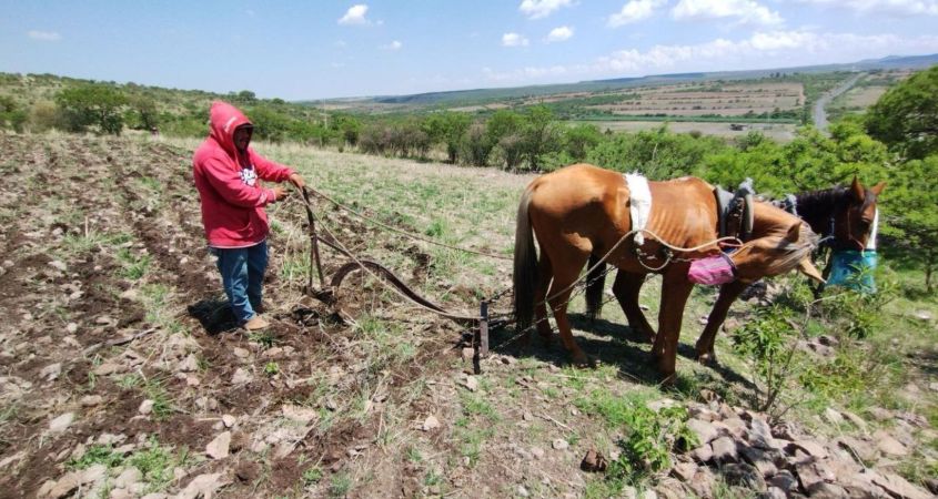 En las parcelas de temporal sobre todo en la parte norte, este día se pudo observar cómo los campesinos ayudados por el arado jalado por el par de caballos rasgaban la pedregosa tierra de la zona, para echar la semilla con la esperanza de que se logre el cultivo: