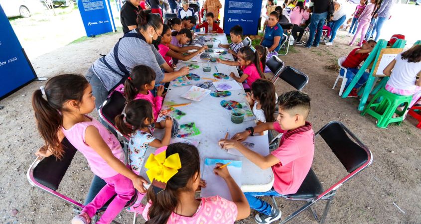 Mónica Alejandra Morado López, habitante de El Carrizalito, trajo a sus niños a disfrutar de las actividades, entre ellas pinta caritas y Museo en tu comunidad, a través de las cuales pudieron pasar un buen rato haciendo manualidades y conviviendo con más niñas y niños.
