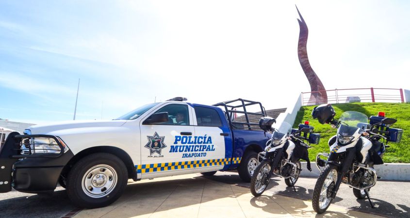 Irapuato recibió cinco patrullas así como tres motocicletas para el uso de las y los elementos de la Policía Municipal.