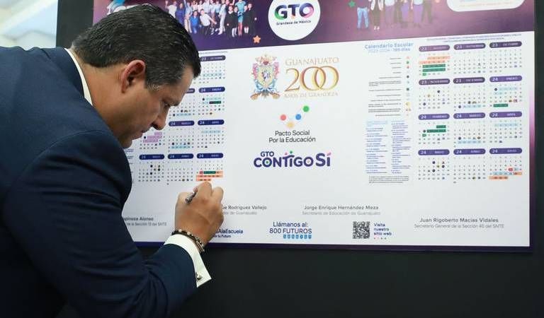 El gobernador de Guanajuato, Diego Sinhue Rodríguez Vallejo, presentó en Silao el Calendario Escolar 2023-2024, que establece 190 días laborales para las escuelas públicas y privadas del Estado, así como 195 días paras las escuelas formadoras de docentes; además, el calendario incluye fechas con celebraciones por los 200 años de Guanajuato como Estado Libre y Soberano.