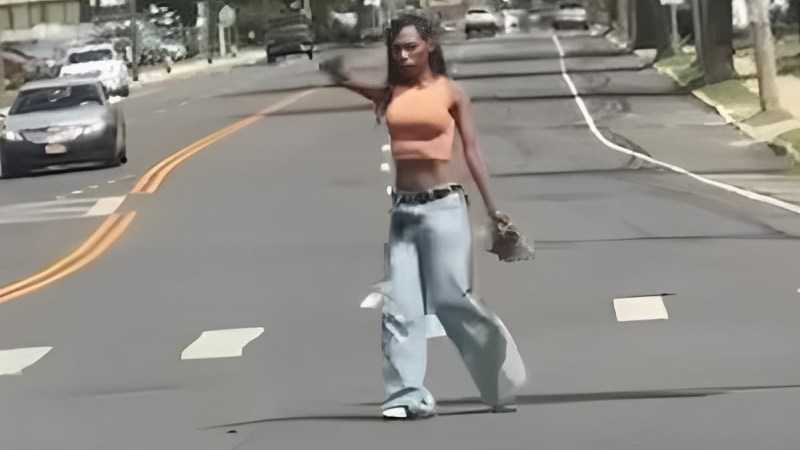 Samantha Decarolis, una de las testigos del evento, compartió su experiencia con medios locales, detallando cómo presenció el incidente y cómo la mujer pasó de la acera al centro de la carretera, ondeando el arma con peligrosidad.