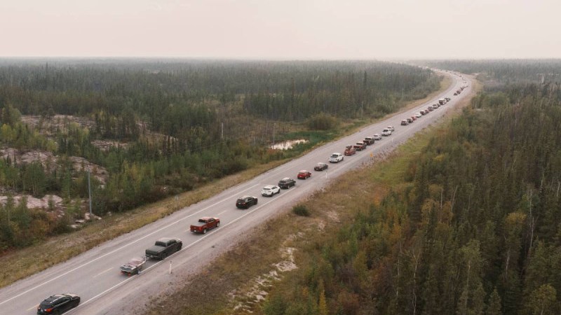 Miles de personas a las que se les ordenó huir de los incendios forestales que avanzan en el extremo norte de Canadá se agruparon este jueves en un aeropuerto local para abordar vuelos de evacuación, mientras una larga fila de autos se dirigía al sur en la única carretera abierta para ponerse a salvo.