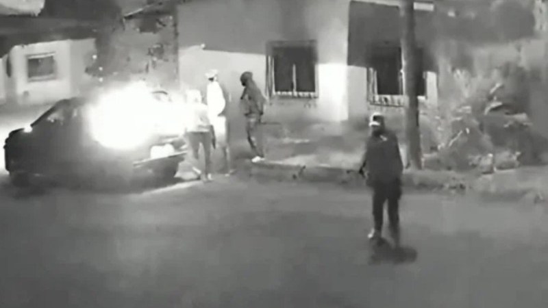 En el video que circula en redes sociales se aprecia el momento en que los agresores están de pie frente a una casa y comienzan a disparar.