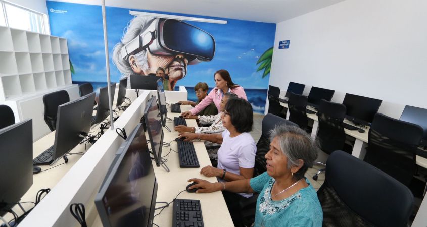 Personas adultas mayores podrán aprender y utilizar el nuevo Centro de Capacitación Digital, ubicado en el Centro Gerontológico, para mantenerse comunicados, realizar algún trámite o enterarse de noticias, en este espacio que ofrece el Sistema DIF Municipal.