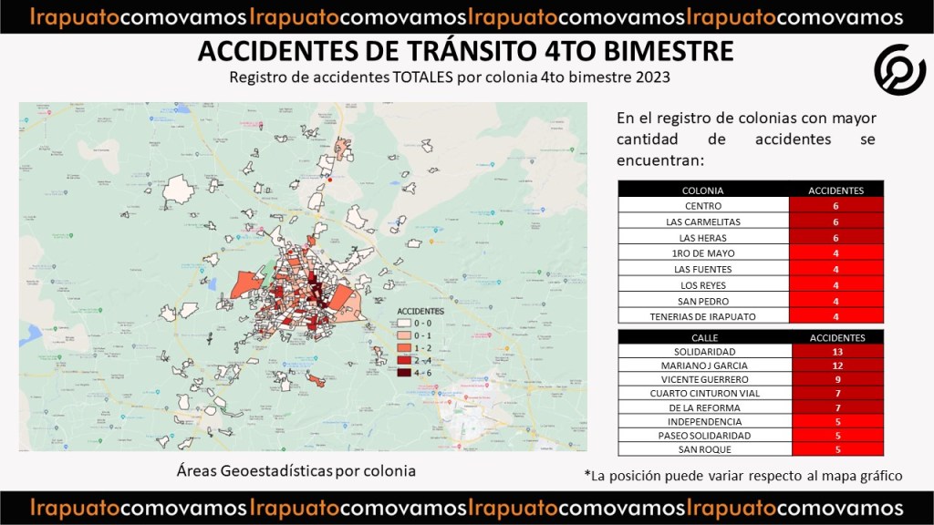 El Observatorio Ciudadano Irapuato ¿Cómo vamos?, presenta el Reporte de accidentes de tránsito del 4to bimestre del 2023.