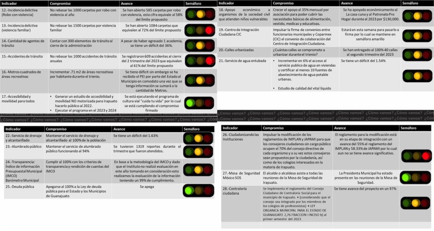El observatorio ciudadano Irapuato ¿cómo vamos? da seguimiento trimestral a los compromisos firmados por la presidenta municipal para el periodo 2021-2024 en las 4 áreas de observación:
