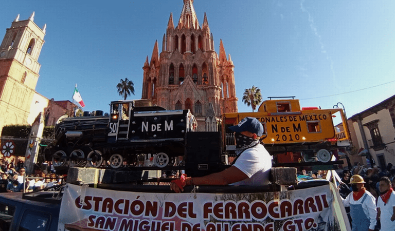 Las personas que salen de la Estación llevarán como cada año una máquina de ferrocarril, estrellas, mecheros y cohetes, banda de música, todos saliendo rumbo al centro con baile y mucho colorido.