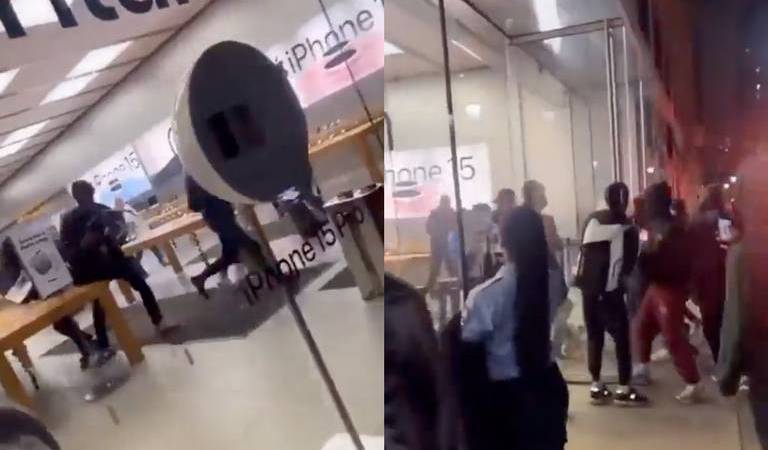 Algunos grupos de adolescentes, con los rostros cubiertos por máscaras, rompieron vidrieras, llenaron bolsas de plástico con ropas, calzado deportivo y accesorios, y huyeron al llegar la Policía.