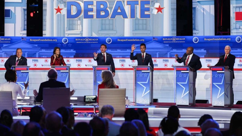Los moderadores no preguntaron a los candidatos sobre los innumerables problemas legales de Trump. El gobernador de Florida, Ron DeSantis, utilizó su primera respuesta para denunciar a Trump por estar «desaparecido en acción» y por añadir billones de dólares a la deuda nacional.