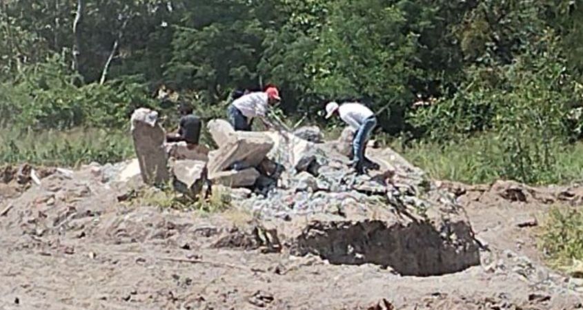 Desde la mañana de este sábado se reportó que varios hombres apoyados con mazos y otras herramientas estaban tratando de separar la varilla de los escombros que hay en lo que es parte exterior del predio Tekchem, espacio localizado a un costo del bulevar Hidalgo.