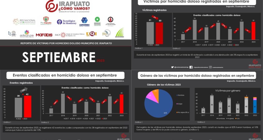 - Septiembre 2023 es el mes con mayor registro de víctimas en lo que va del 2023 y el mayor registro de los últimos 10 meses en Irapuato.