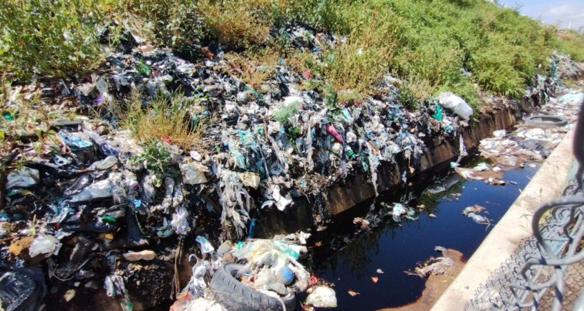 En tanto desde el camino que se localiza a un costado del relleno sanitario se puede ver basura; entre el camino y el cerro de basura se alcanza a ver la canaleta de lixiviados llena de basura, bolsas de plástico, sillones, madera, tierra y se revuelven entre el líquido oscuro que hay en el lugar y del que emana un fuerte olor que se dispersa en la zona.