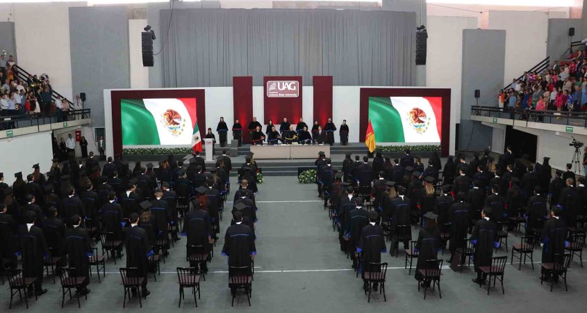 En su mensaje, el padrino recordó cuando él se graduó de esta casa de estudios, una de las etapas más bonitas de su vida, y felicitó a quienes culminaron su formación universitaria en la UAG.