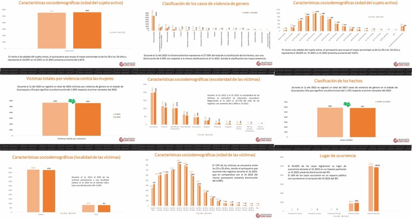 - Se registraron 5817 casos de violencia contra las mujeres en el primer semestre del 2023, promediando 969 casos por mes en el estado de Guanajuato.