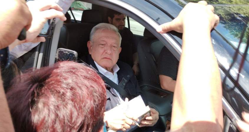 Por fuera, esquina de las calles Tierra Blanca y Poza Rica, el presidente hizo un alto dónde simpatizantes con gritos y porras, le pedían que se reeligiera, que seis años son muy pocos para seguir transformando el país. Un grupo de 10 extrabajadores petroleros le pidieron que los escuchara; «escúchanos, señor presidente”.