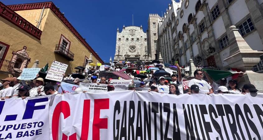 Trabajadores del Poder Judicial Federal en Guanajuato protestaron contra los recortes presupuestarios y a fideicomisos que podrían superar los 15 mil millones de pesos. Reclaman afectaciones a sus prestaciones y proyectos de vida a futuro.