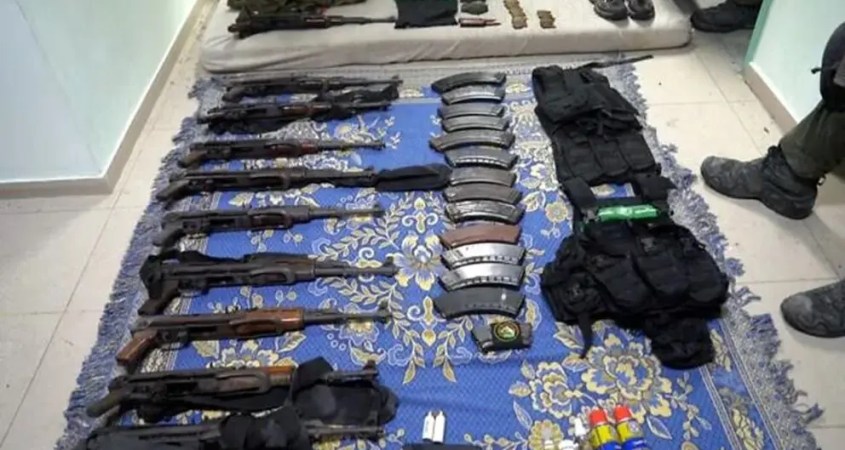 El Ejército israelí divulgó fotos y videos de varios fusiles de asalto, granadas y otros equipos militares.