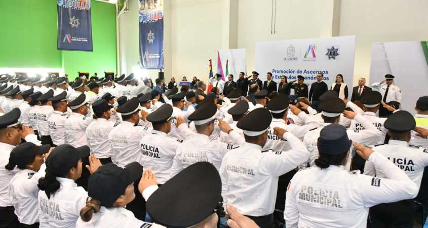 “Reconocemos a 70 integrantes de la Secretaría de Seguridad Ciudadana que lograron obtener el grado inmediato superior. 51 elementos ascendieron a grado de Policía Tercero, 15 al grado de Policía Segundo, 3 al grado de Policía Primero, y uno al grado de Suboficial”, compartió.