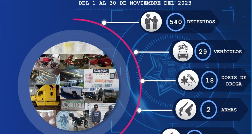 Con la finalidad de prevenir delitos y conductos antisociales en colonias y zonas rurales del municipio, la Secretaría de Seguridad Ciudadana (SSCI), a través de la operatividad, durante noviembre realizó la detención de 540 personas.