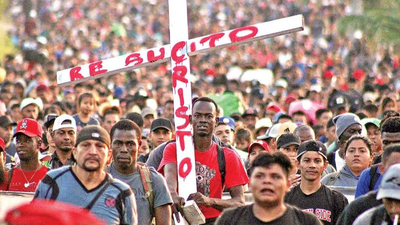 En víspera de Navidad, la mayor caravana de migrantes del año, unos 10 mil, partieron desde Tapachula hacia la frontera con Estados Unidos. El grupo ha denominado Éxodo de la pobreza, portan una cruz y una manta al frente y con ellos caminan muchos niños.