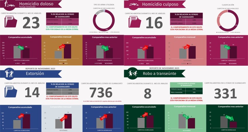 El observatorio ciudadano Irapuato ¿cómo vamos? presenta su reporte de incidencia delictiva del municipio de Irapuato correspondiente al mes de noviembre 2023 destacando los siguientes datos: