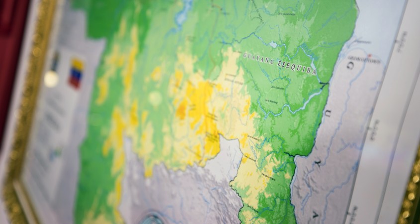 Ambos países están enredados en una disputa por 159.000 kilómetros cuadrados de territorio al oeste del río Esequibo, una región rica en petróleo, minerales y biodiversidad que a menudo aparece en los mapas venezolanos como zona de reclamación y que constituye dos tercios de la superficie total de Guyana.