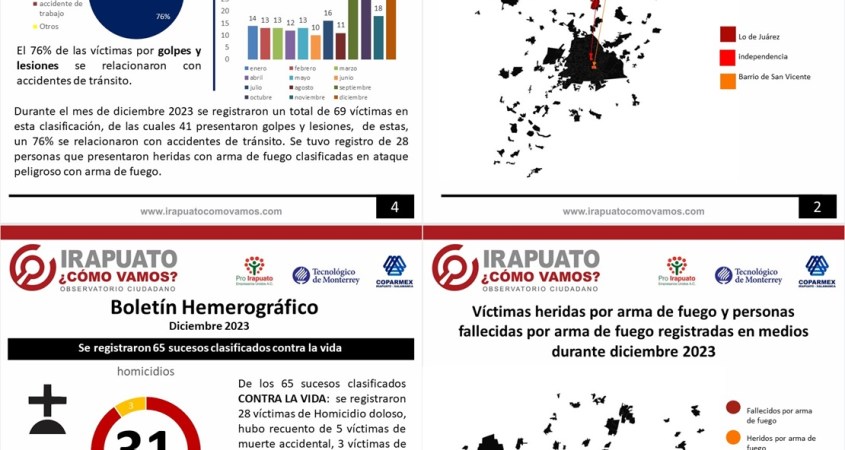 El Observatorio ciudadano Irapuato ¿Cómo vamos?, presenta el Reporte hemerográfico al mes de diciembre 2023.